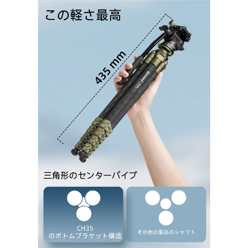 軽量・コンパクトで持ち運びやすい、三拍子そろった三脚です。CAYER(カイヤー)は、カメラおよびビデオ用三脚の設計・製造に特化したグローバルブランドです。2016年の創業以来、テレビ局、映画スタジオ、著名なフォトグラファーや映像クリエイターに信頼される製品を提供してきました。これまでに中国国内外で数多くの特許を取得し、映像制作の未来を切り拓く技術革新によって多くの賞を受賞しています。2025年現在、CAYERの製品は世界40か国以上で販売され、映像業界を支えるグローバルリーダーを目指しています。ビデオ三脚の製造技術を活かし、カーボン製のフォト用三脚を開発した製品がCHシリーズです。
