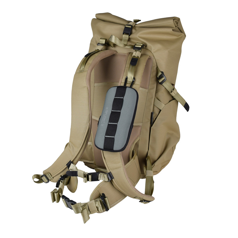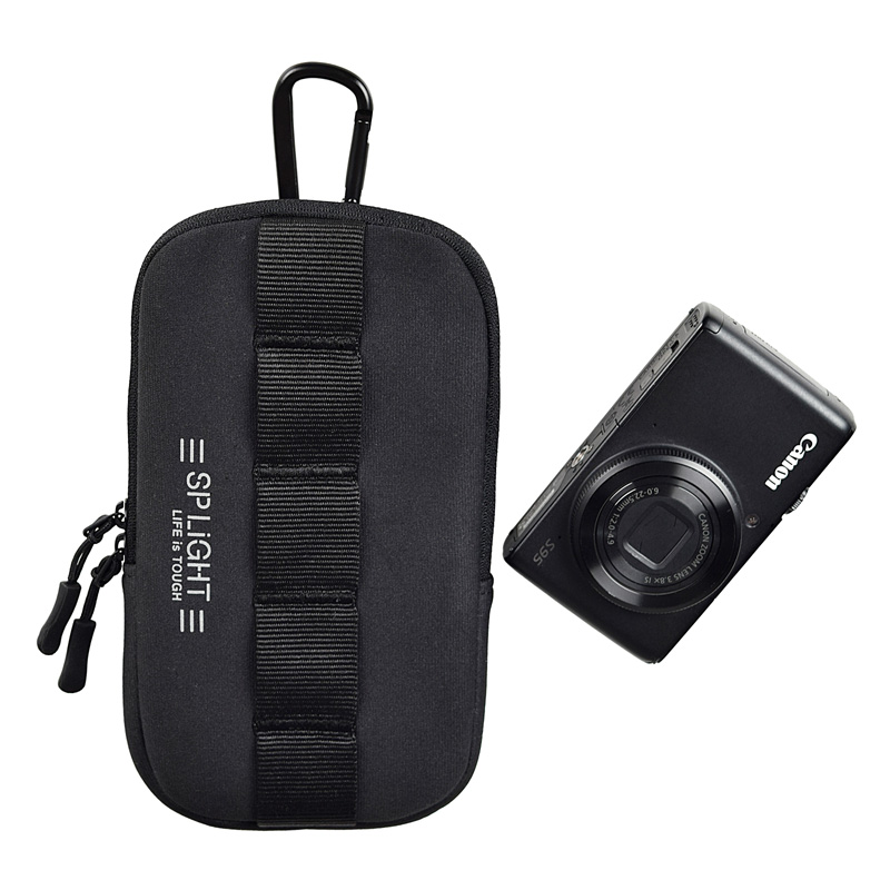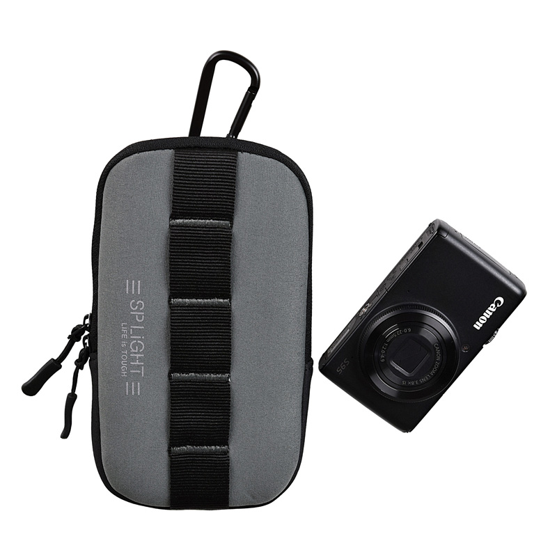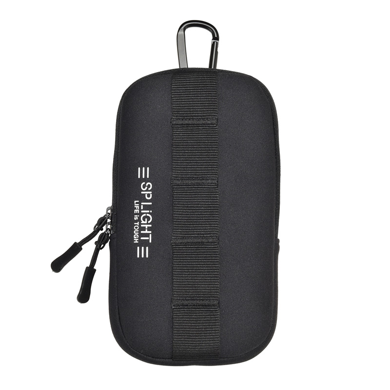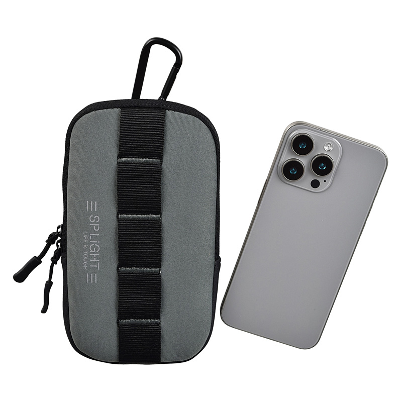 スマホやカメラ・文具や工具など自由に収納できるクッションポーチ。カラビナと縦、横のベルトループを装備しているので、バッグやリュック、腰ベルトに装着できます。