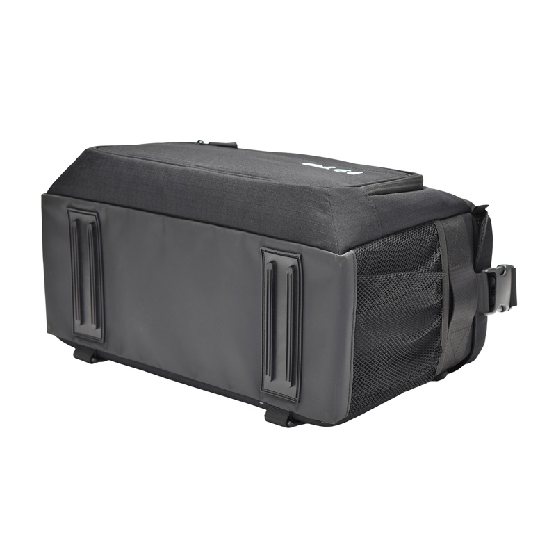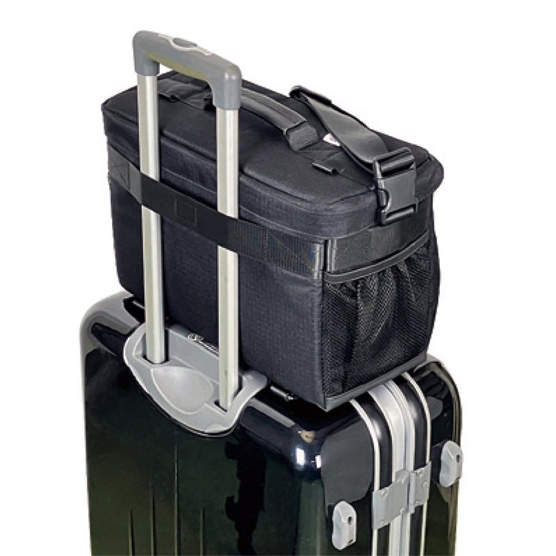 大型のクッションパッドが付いたショルダーベルトは取外しが可能。ショルダーベルトを外しても、上部の本革製大型ハンドベルトで素早い移動を可能にします。背面にはキャリーカートに取り付けられるループベルトを装備し、出張時やトラベル時のカートバッグやスーツケースのハンドルに付けられます。底部は防水性に優れたターポリン素材と2本のゴム脚で、地面に直接置いてもメイン収納への浸水を防ぎます。