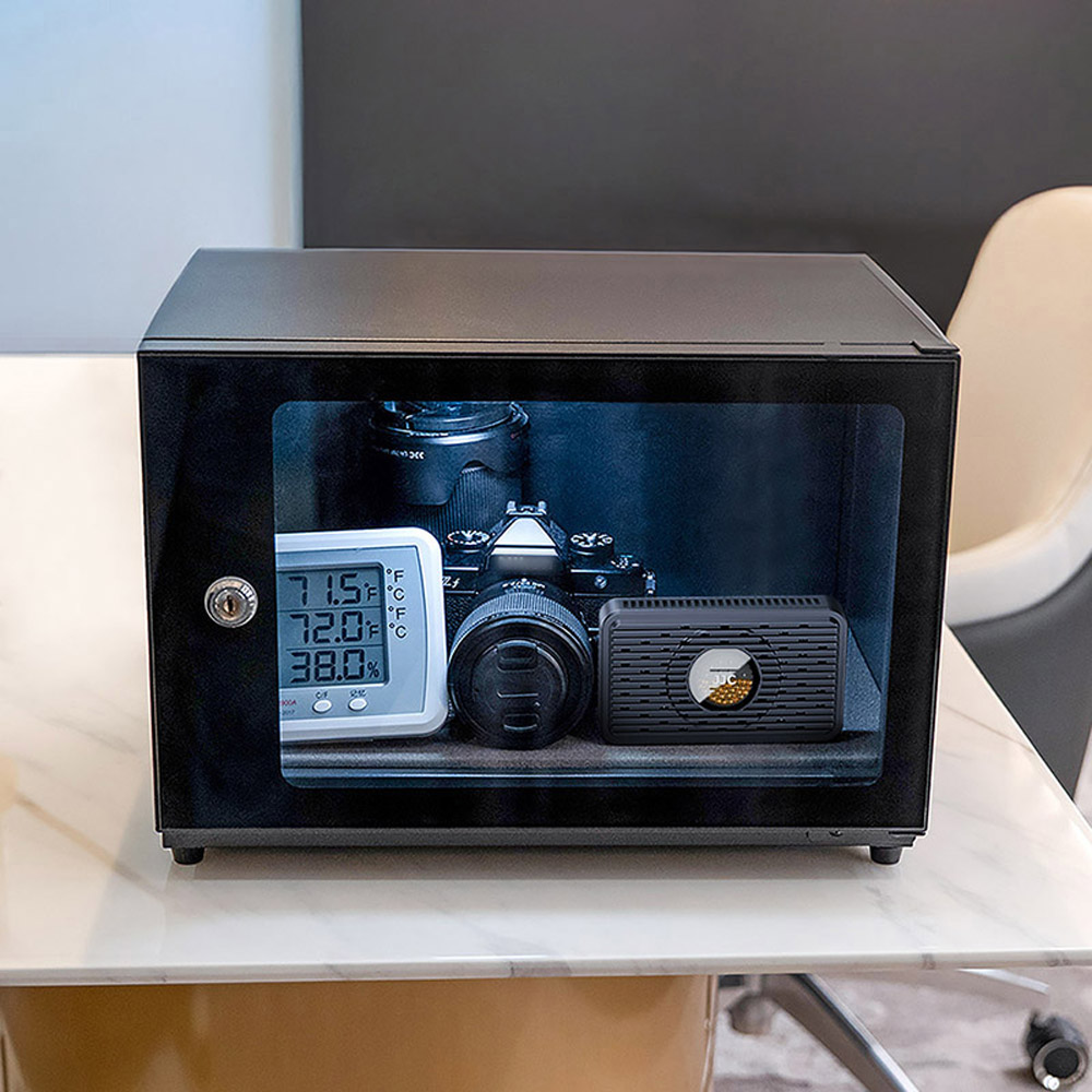 カメラ・顕微鏡・電子機器・精密機器・医療用品・食品などのドライボックス・金庫・工具箱・薬品キャビネットに入れて、湿気やカビの防止にお使いください。密閉率が高い程高い効果が得られます。本製品は最適な乾燥状態では、インジゲーター窓のシリカゲルビーズはオレンジ色です。湿気を吸収するとグリーンに変わります。完全に飽和した後、約10時間の乾燥で吸湿能力と色が回復します。