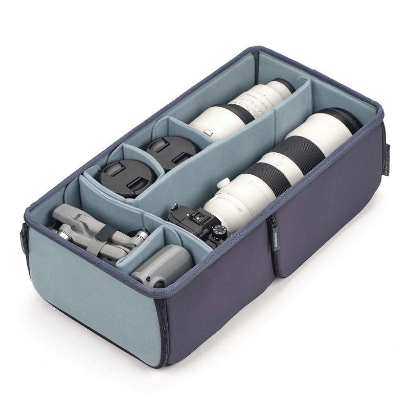耐衝撃に優れたEVAシェルと仕切を使用したカメラ用インナーボックス。壁と仕切りはEVA製で、多くのカメラバッグに使用されているソフトクッションよりも薄型で優れた保護性能を発揮します。RSTシリーズはそれぞれShimoda ActionXv2 X30,X40,X50に対応。従来のリア、サイドアクセス(RS)に加えて、トップアクセス(T)が可能になりました。これによりバックパックの上から下まで機材の収納スペースを最大限に活用できるように設計されています。