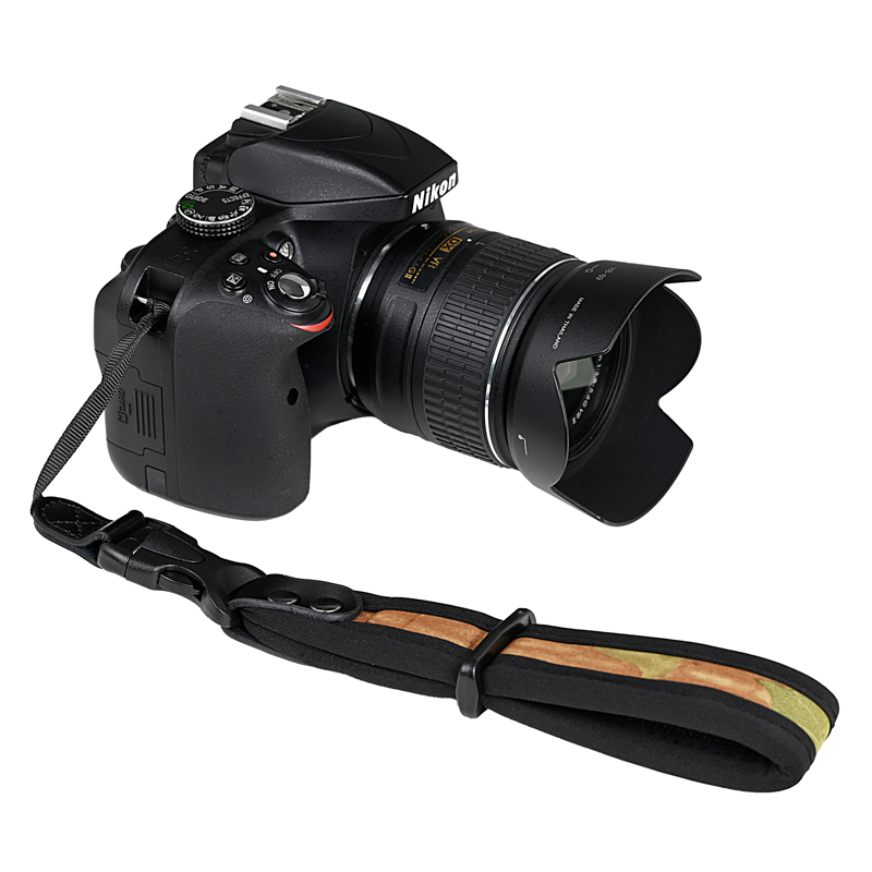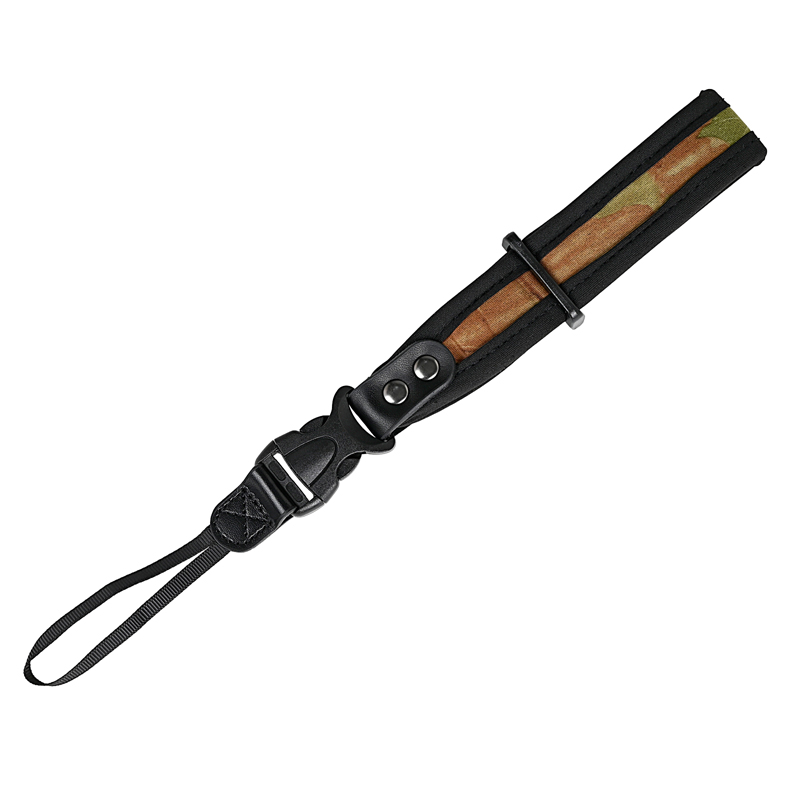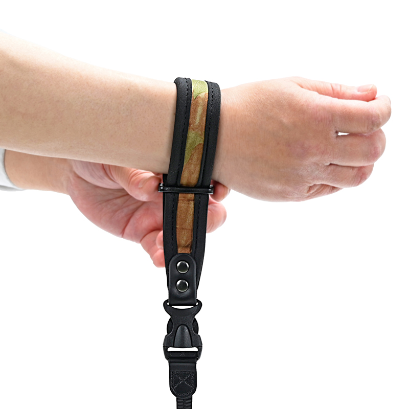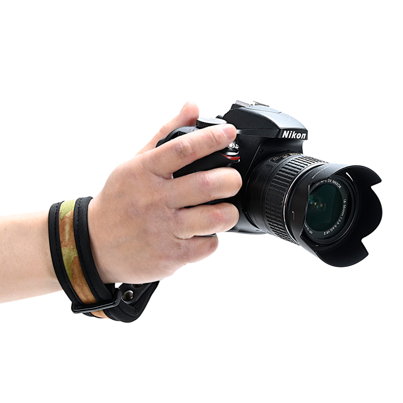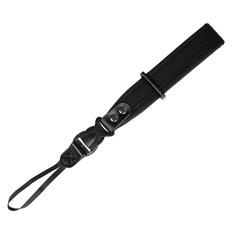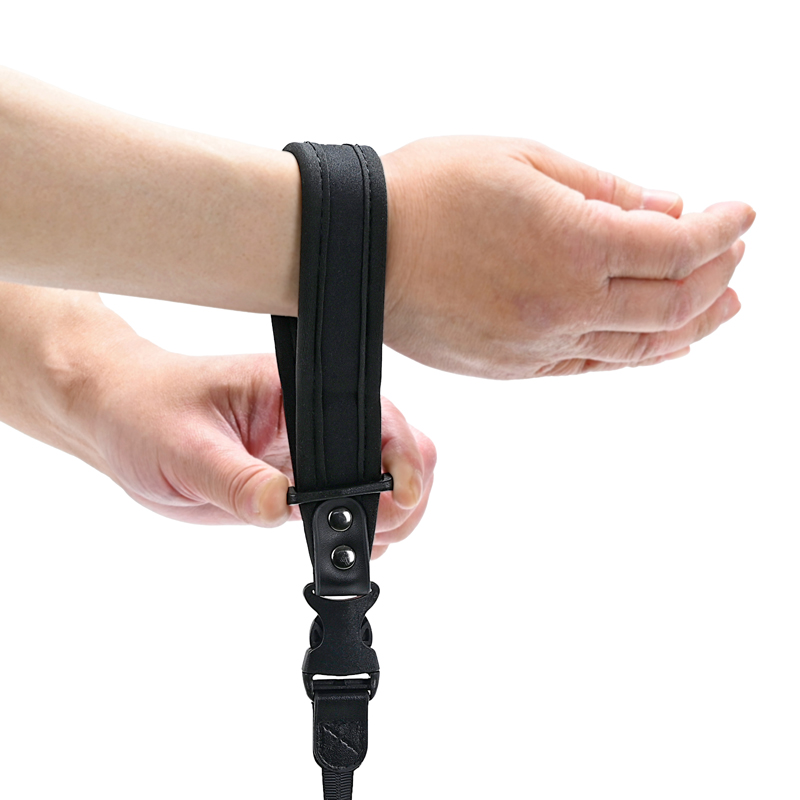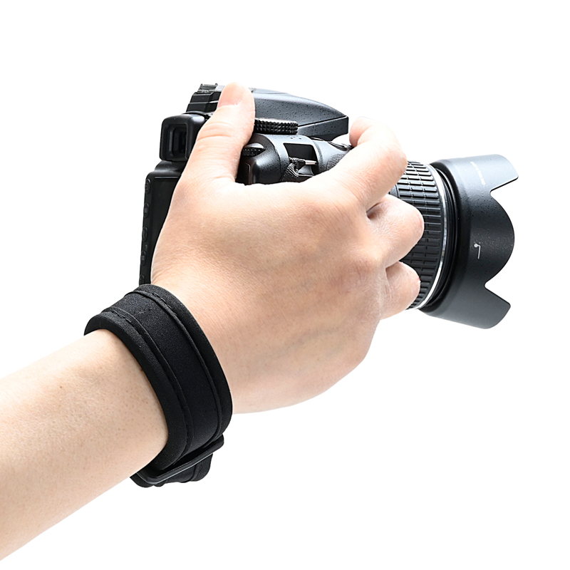 柔らかく弾力のあるネオプレーン素材を使用したカメラ用ハンドストラップ。手になじみやすく、長時間の撮影でも疲れにくい仕様です。手首に巻きつけることでグリップ性が向上し、カメラの落下防止や手ブレ軽減にも効果的。ストッパー付きでしっかり手首に固定できます。